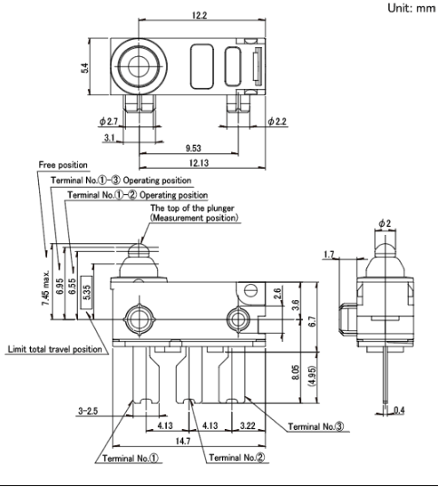 14.75.46.7mm 防水型 主體高度為6.7mm,低背式。