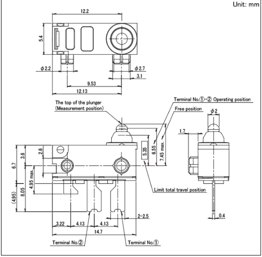 14.75.46.7mm 防水型 主體高度為6.7mm,低背式。