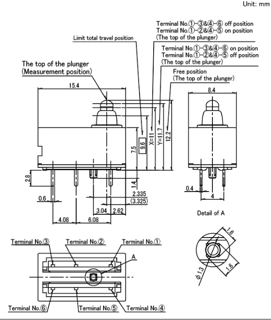 15.4x8.4x7.5mm 防水型 不賴操作置與速度,實(shí)現(xiàn)穩(wěn)定接觸的雙電路同時(shí)切換開(kāi)關(guān)。