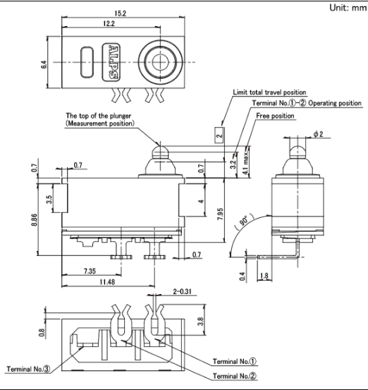 15.2x6.4x7.95mm 防水型 運用叉型端子可實現免焊錫連接。
