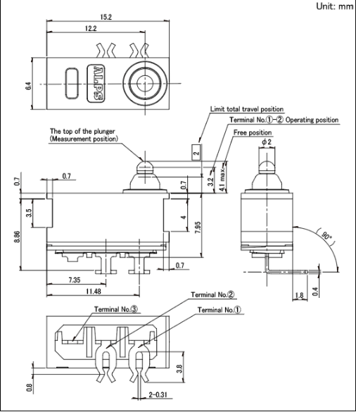 15.2x6.4x7.95mm 防水型 運用叉型端子可實現(xiàn)免焊錫連接。