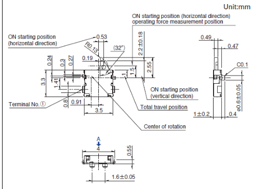 3.5x3.3x1mm 小型雙向動作型 有常開與常閉兩種回路。