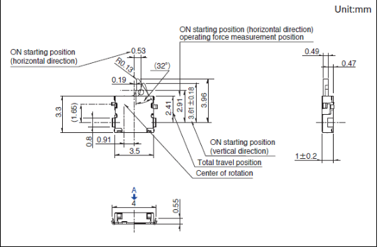 3.5x3.3x1mm 小型雙向動作型 有常開與常閉兩種回路。