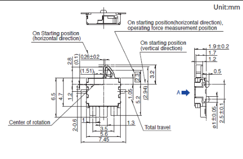 5.6x4.7x1.9mm 厚度為1.9mm、雙向動(dòng)作型 可實(shí)施雙向檢測(cè)的、本體厚度為1.9mm的表面貼裝型。