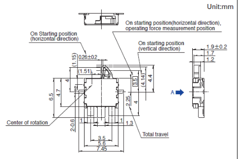5.6x4.7x1.9mm 厚度為1.9mm、雙向動(dòng)作型 可實(shí)施雙向檢測(cè)的、本體厚度為1.9mm的表面貼裝型。