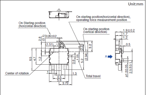 5.6x4.7x1.9mm 厚度為1.9mm、雙向動作型 可實(shí)施雙向檢測的、本體厚度為1.9mm的表面貼裝型。