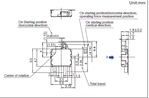 5.6x4.7x1.9mm 厚度為1.9mm、雙向動作型 可實(shí)施雙向檢測的、本體厚度為1.9mm的表面貼裝型。