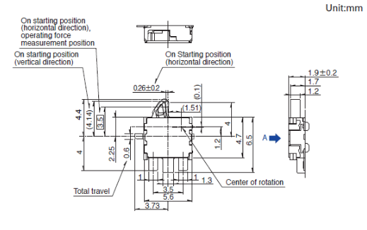 5.6x4.7x1.9mm 厚度為1.9mm、雙向動(dòng)作型 可實(shí)施雙向檢測(cè)的、本體厚度為1.9mm的表面貼裝型。