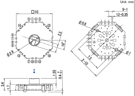 10x10x1.7mm 大扭矩觸控式薄型 最大可支持10個(gè)檔位的模式切換開(kāi)關(guān)。