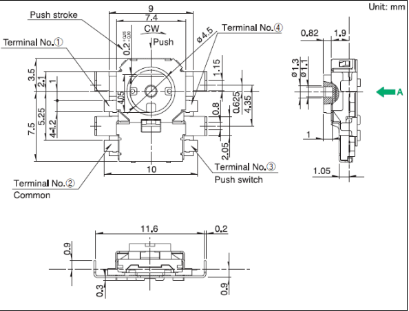 編碼器和按鈕操作型開關(guān) 可以利用裝備側(cè)面空間的小型多功能裝置。