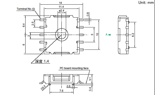 11.4x12.4x3.5mm 9接點(diǎn)對應(yīng)豎型 通過獨(dú)有的節(jié)度機(jī)構(gòu)實(shí)現(xiàn)了輕快操作感覺的薄型。