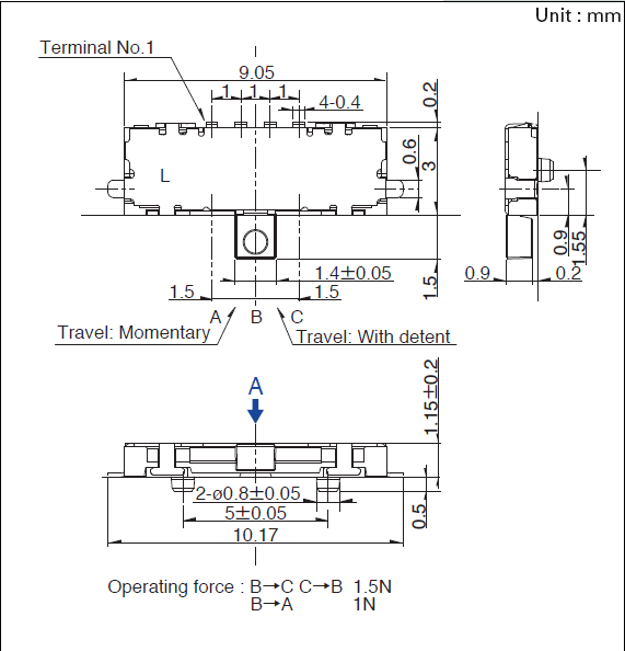 動作力: 1N (彈回), 1.5N (鎖定側(cè))