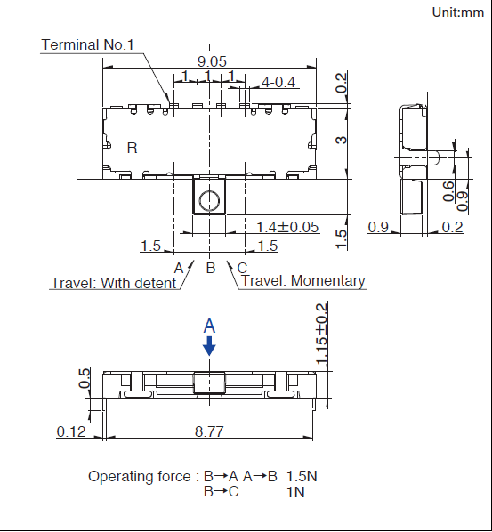 動作力: 1N (彈回), 1.5N (鎖定側(cè))