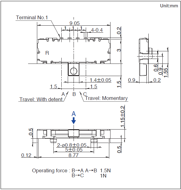 動作力: 1N (彈回), 1.5N (鎖定側(cè))