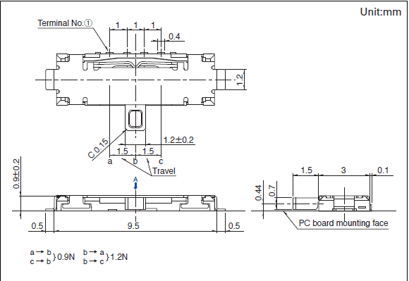 0.9(H)mm, 1.5mm行程的表面貼裝型 本體高度0.9mm的薄型。