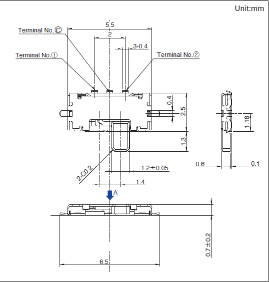 高度為0.7mm、行程為1.4mm的表面貼裝型 本體高度為0.7mm的小型產(chǎn)品。