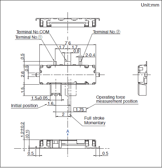 1.2(H)mm單側(cè)彈回式 本體高1.2mm的小型單側(cè)彈回式,可實(shí)現(xiàn)2.0mm行程。
