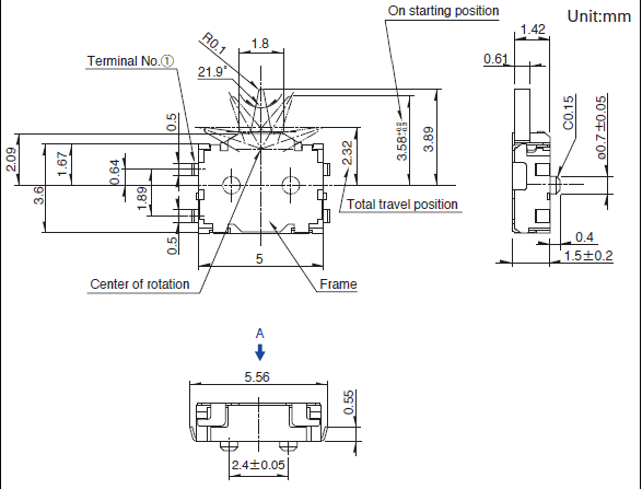 5x4x1.5mm 小型雙向感知型 可檢測(cè)左右方向,本體部分僅厚1.5mm的薄型。