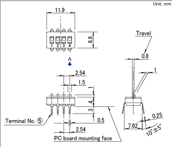 對(duì)應(yīng)2~10電路的 實(shí)現(xiàn)金接點(diǎn)的高可靠性, 與IC相同形狀可自動(dòng)插入。