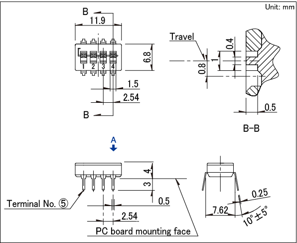 對應2~10電路的 實現(xiàn)金接點的高可靠性, 與IC相同形狀可自動插入。