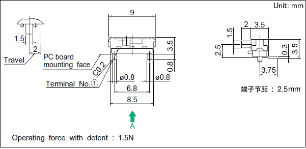 3.5(H)mm, 2.0mm行程型 適應(yīng)各種攜帶式機(jī)器的小型·高密度化。