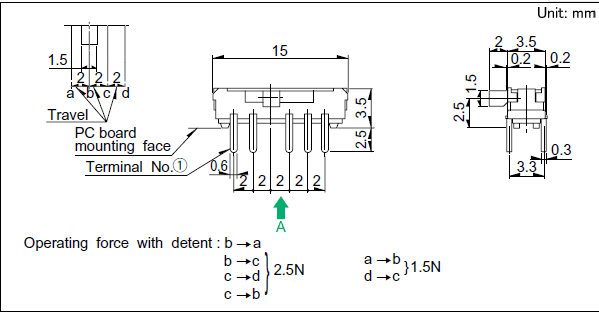 3.5(H)mm, 2.0mm行程型 適應(yīng)各種攜帶式機器的小型·高密度化。
