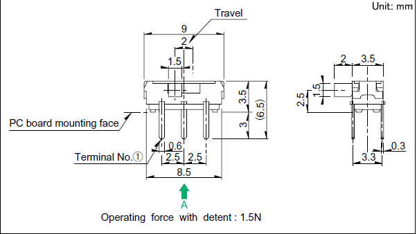 3.5(H)mm, 2.0mm行程型 適應(yīng)各種攜帶式機(jī)器的小型·高密度化。