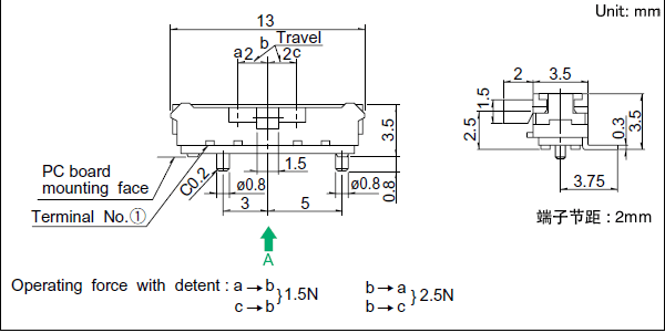 3.5(H)mm, 2.0mm行程型 適應(yīng)各種攜帶式機(jī)器的小型·高密度化。