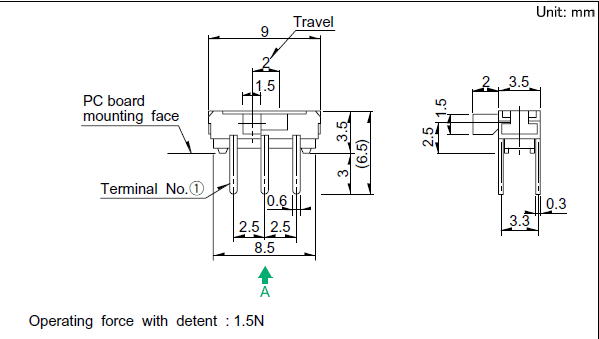 3.5(H)mm, 2.0mm行程型 適應(yīng)各種攜帶式機器的小型·高密度化。