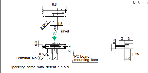 2.0(H)mm, 2.0mm行程型 可選擇焊接方法的小型通用型。