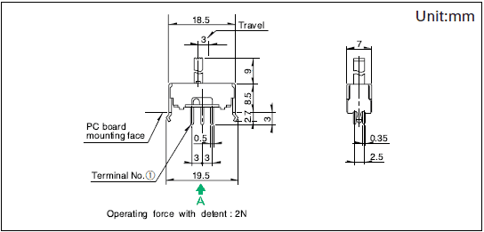 最大額定/最小額定(電阻負(fù)載) 0.1A 30V DC/50μA 3V DC,接觸電阻(初期/壽命后) 25mΩ max./65mΩ max.,無負(fù)載壽命 10,000 cycles 45mΩ max.負(fù)載壽命(最大額定負(fù)載) 10,000 cycles 65mΩ max.操作部長度: 9mm,電路數(shù)