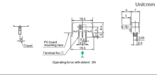 最大額定/最小額定(電阻負載) 0.1A 30V DC/50μA 3V DC,接觸電阻(初期/壽命后) 25mΩ max./65mΩ max.,無負載壽命 10,000 cycles 45mΩ max.負載壽命(最大額定負載) 10,000 cycles 65mΩ max.操作部長度: 6mm,電路數