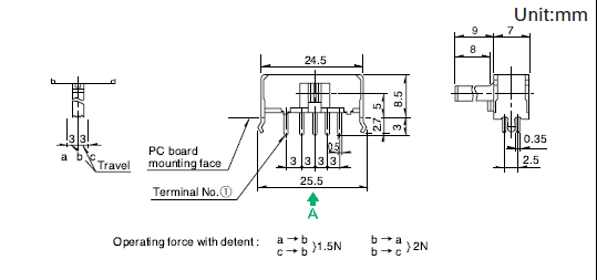 最大額定/最小額定(電阻負(fù)載) 0.1A 30V DC/50μA 3V DC,接觸電阻(初期/壽命后) 25mΩ max./65mΩ max.,無負(fù)載壽命 10,000 cycles 45mΩ max.負(fù)載壽命(最大額定負(fù)載) 10,000 cycles 65mΩ max.操作部長度: 9mm,電路數(shù)
